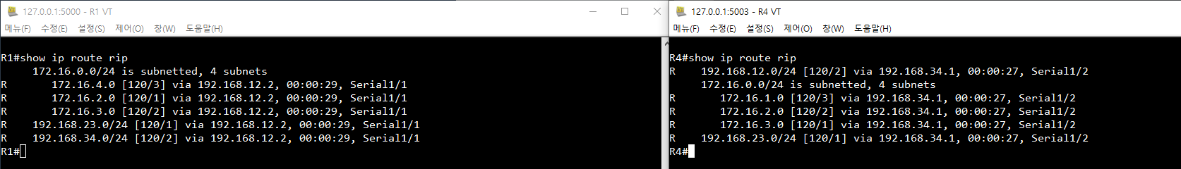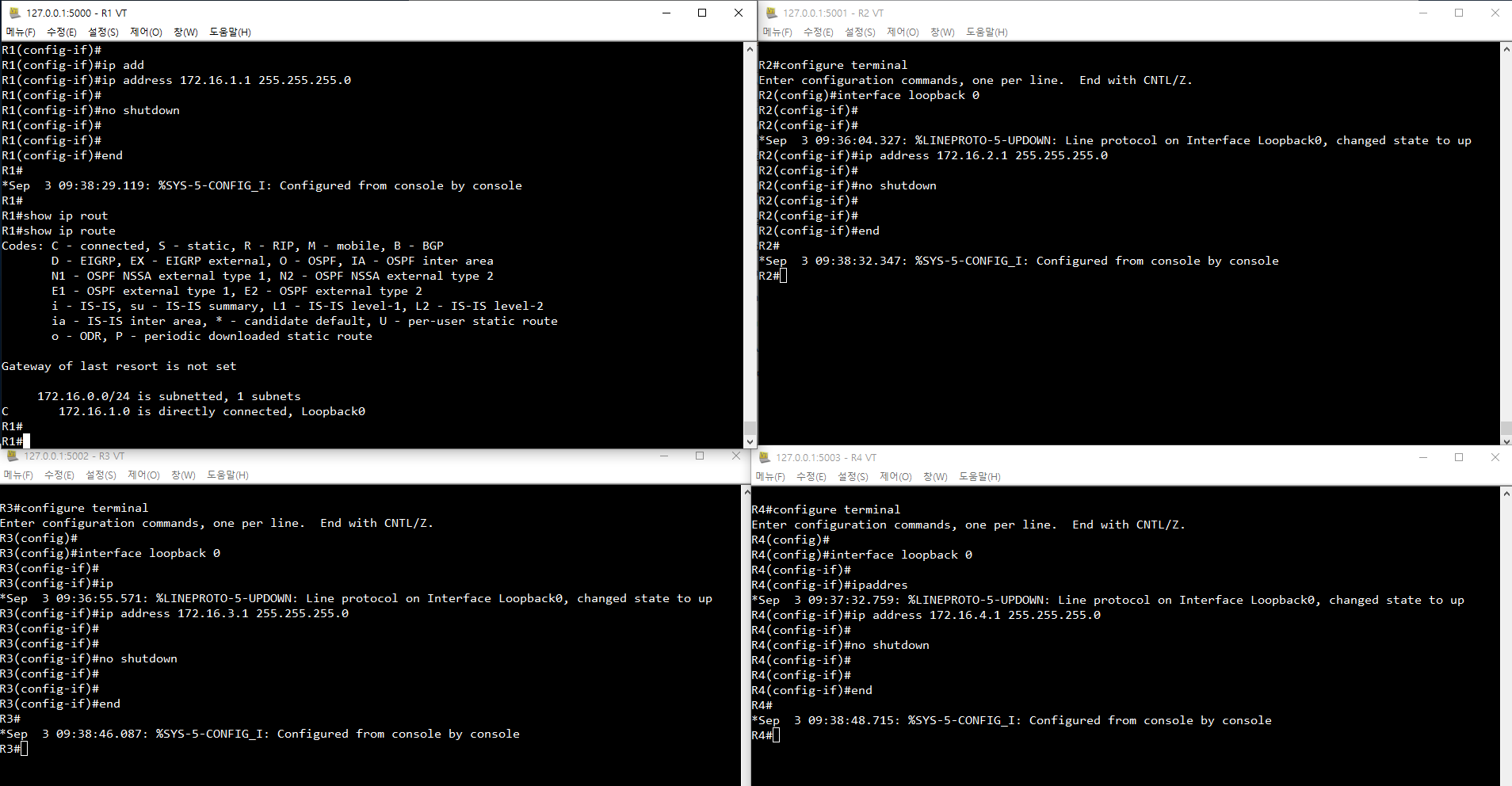 - TCP 포트 : 5000-5003 (R1-R4)