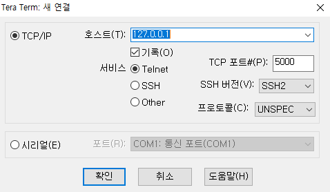- Tera Term 프로그램 > 메뉴 > 새로만들기