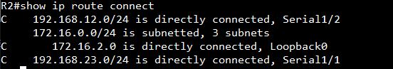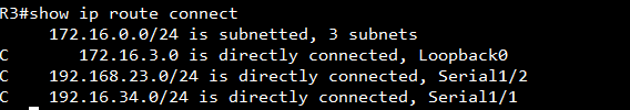 # show ip route --> R2,3 : 중간에 있는 라우터니까 C 가 3줄 뜸