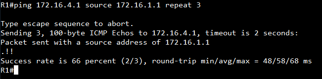 ping 172.16.1.1 source 172.16.4.1 repeat 3