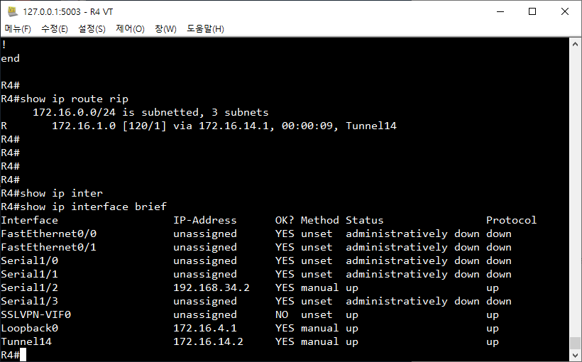 인터페이스 loopback 에 터널 (R1, R4 연결) 등록