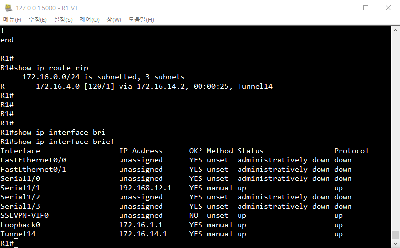 # RIP 라우팅 테이블 확인