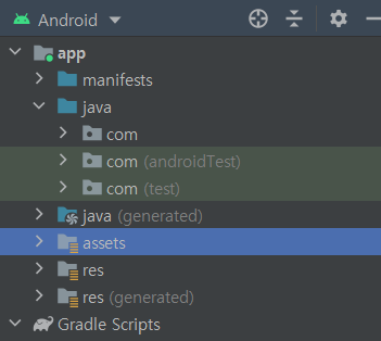 ii) 안드로이드 스튜디오 : app 밑에 assets라는 디렉토리가 생성됨