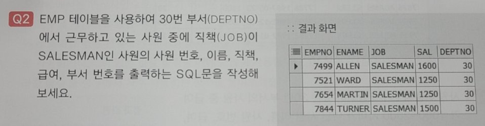 SELECT EMPNO, ENAME, JOB, SAL, DEPTNO