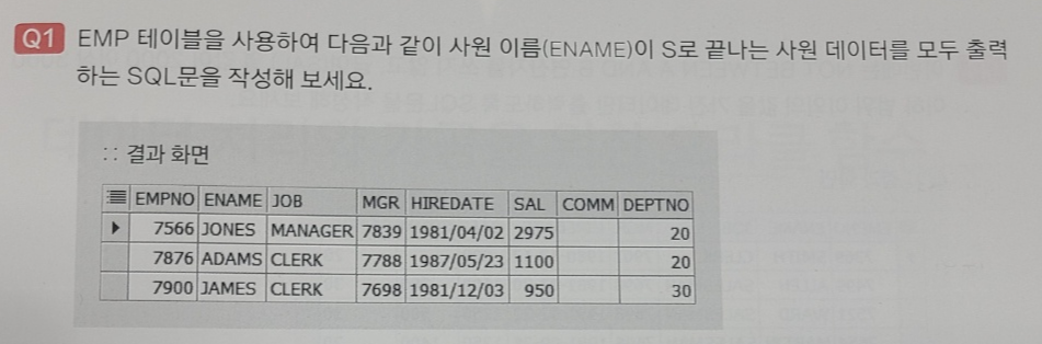 WHERE ENAME LIKE '%S';